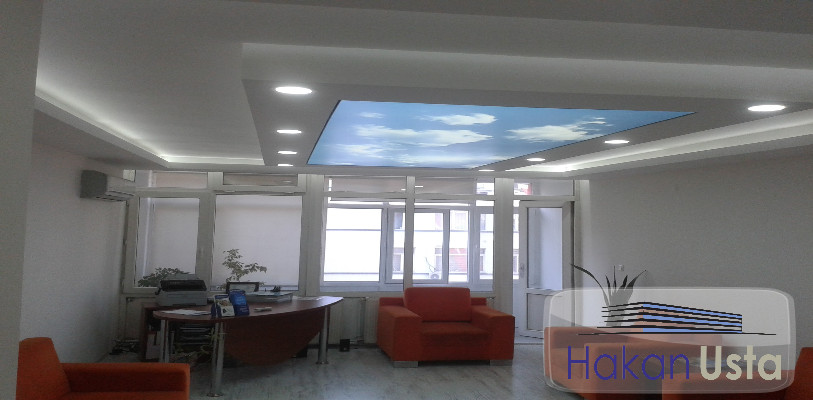 Mevcut döşemeye askı sistemiyle monte edilen metal iskelet üzerine alçı plakaların vidalanması ile oluşturulan Asma Tavan sistemidir.
